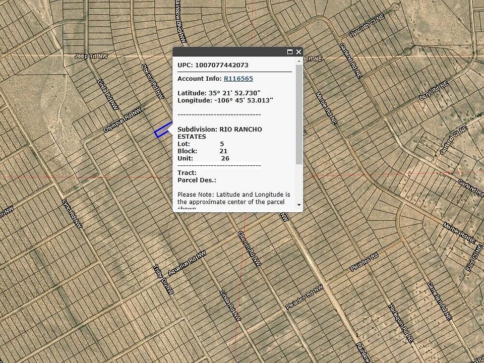 This 1/2-acre parcel in Sandoval County offers incredible potential for your next project. Located just one block west of Rainbow, the property faces east, providing breathtaking views of the Sandia Mountains and stunning sunrises. With no utilities currently available, this land offers a blank canvas for off-grid living, custom construction, or a smart investment. Enjoy the peaceful surroundings when you purchase this fantastic opportunity, and own a piece of land with remarkable views and great potential.