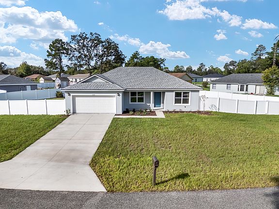 Like New 3 bedroom 2 full bathroom home in Marion Oaks with .35 acres of land and fully fenced by 6 foot vinyl privacy backyard. Samsung stainless steel appliances in kitchen. Samsung washer and dryer in indoor laundry room. Tons of kitchen cabinet space. Tons of granite countertop space especially on the kitchen island with sink and garage disposal. Split level. Master bathroom has dual vanity sinks. Master bedroom has walk in closet. Carpet in bedrooms. Laminate in kitchen and living room. Tile in bathrooms. Master bath has stand up shower. Second bath has bathtub and shower combination. Two linen closets. Beautiful home that is ideal for family and/ or pets. 2 car smart/ app controlled garage. Driveway can fit approximately 4 more cars.