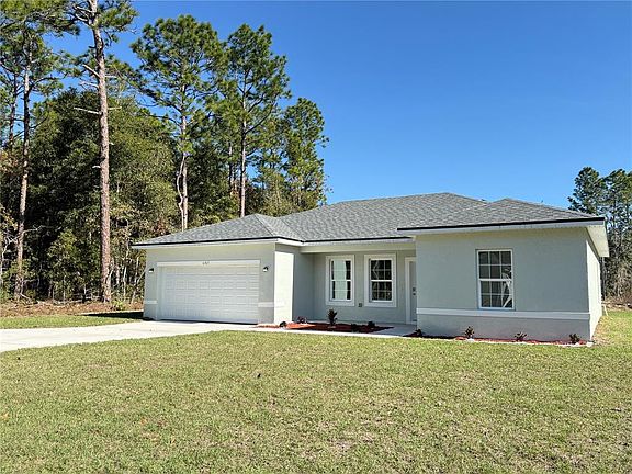 Brand New Home – Ready for Quick Move-In! This modern property is located in a tranquil neighborhood, just 20 minutes from downtown Ocala and 1 hour from downtown Orlando, offering the perfect balance of peaceful living with convenient access to city amenities. Featuring a thoughtfully designed open floor plan, this home includes four spacious bedrooms and two bathrooms, providing ample room for your family’s needs. The kitchen is equipped with sleek, modern cabinetry and top-of-the-line stainless steel appliances, including a stove, refrigerator, garbage disposal, dishwasher, and microwave. Both the kitchen and bathrooms boast beautiful granite countertops, adding an elegant touch to each space. The interior is finished with durable ceramic flooring throughout all rooms and living areas, combining both style and practicality. Additionally, the shower walls are tastefully tiled, enhancing the home's overall aesthetic. This property also offers a premium corner lot, providing extra privacy and space. Don’t miss out on the opportunity to make this brand-new house your home! Schedule your visit today!