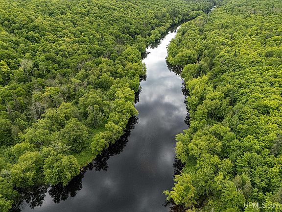 As remote as it gets, this 34-acre parcel features 1320' of frontage on the meandering Presque Isle River. Access is via forest roads over privately owned logging properties. Undeveloped, off-grid and awaiting your plans for a remote hunting camp, fly fishing paradise, ultimate wilderness retreat or just a place to completely escape. Heavily wooded yet a manageable hike gets you from the road to the breathtaking river frontage. In the family since the 1950s, this rare find offers a genuine unspoiled wilderness experience at a great price!