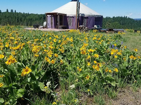 Spectacular private 20 acres with dramatic Mountain and canyon views plus your own Waterfall from Johnson Creek. Nicely appointed 30' Yurt is romantic and yet easily accessible. Truly one of a kind property. Possible seller financing.