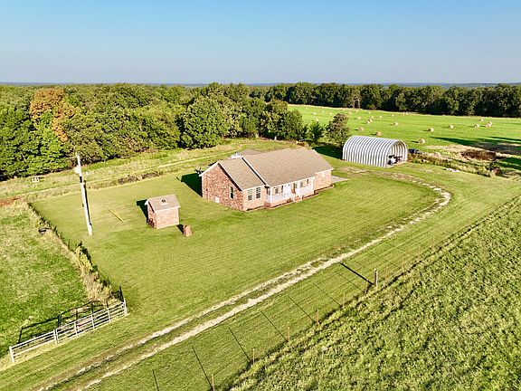 Welcome to your dream retreat nestled just a short drive from Siloam Springs and the vibrant heart of Fayetteville. This gorgeous custom-built home on sprawling acreage offers the perfect blend of luxury, comfort, and natural beauty. As you approach, a private drive welcomes you, ensuring absolute privacy and seclusion. Prepare to be captivated by the breathtaking panoramic views that surround you. The all-brick custom-built home boasts an inviting open floor plan with 3 bedrooms, 3 baths, an office, and a formal dining room. Inside, you'll discover custom oak cabinets throughout, complemented by beautiful tile and hardwood composite flooring. A cozy fireplace insert not only adds charm but also serves as an incredible heat source during cool winter days. The oversized kitchen with an eating bar is a chef's delight, perfect for entertaining family and friends. Step outside to the wonderful screened-in back patio, which overlooks the park-like setting, providing an ideal space for relaxation and gatherings. For your storage needs and projects, a Quonset hut with a built-in shop awaits. The farm is meticulously fenced and cross-fenced, complete with a pole barn featuring working pens and a corral, along with a convenient head chute. This property offers the ideal combination of productive pasture and hardwood timber. Nature enthusiasts will revel in the abundant wildlife, with deer and deer sign scattered throughout the land. You can even create your own hunting oasis, as the property boasts numerous persimmon trees and potential food plot areas. Don't miss out on this incredible investment opportunity. Whether you're considering a peaceful countryside retreat, a working farm, or a hunting haven, this property has it all. Welcome home to your own slice of paradise! Please call today for driving directions or to schedule your private tour.