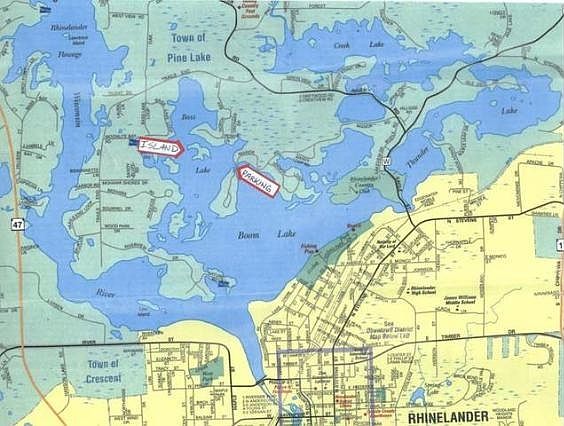 Fantasy Island! Imagine owning your own island! Located on the Bass Lake portion of the Rhinelander Flowage, this approximately 4 acre island is truly a place to get away from it all. This irregular shaped island has an estimated 3,000 feet of shoreland, with a couple of small bays, it is nicely wooded with a mix of hardwoods and majestic white pines making this a truly unique property.
