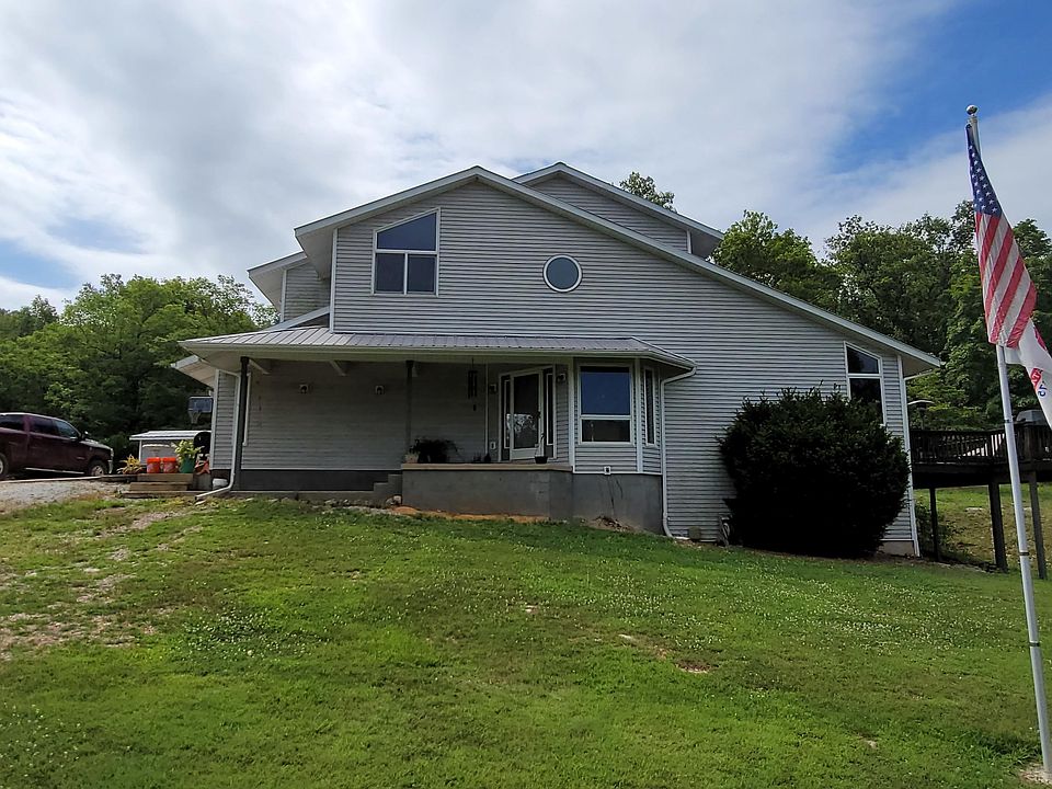 Total seclusion comes with this house and acreage only 2.7 miles from old DogPatch USA. Nice view overlooking huge stocked fish pond. Deer & Turkey abound! Nice garden spot area. Has been leveled for shop building. Home has hardwood floors & granite counter tops.