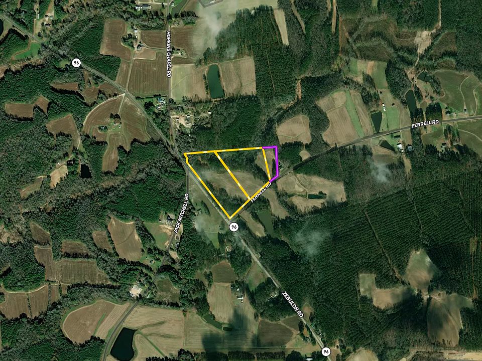 Located just North of Zebulon, we have found that tranquil and country setting you have been searching for. Parcels like this don't come along very often, so take a look while it is available. Located at the intersection of Ferrell Road and Highway 96, this parcel offers both tillable open acreage as well as wooded acreage with ample road frontage. Just minutes from the Zebulon, the amenities are just a few minutes away, as well as schools and businesses. Having No HOA to pay or contend with makes this listing even more appealing. Bring your horses, keep the tillable acres in farm cash rent, or potentially build your dream home, have gardens, room for kids to play, farm animals, the potential is endless. Seller is open to a buyer placing 7 or less home sites on the parcel-pending county subdividing and septic testing. Soils appear suitable on the USGS maps, but buyers will be responsible for having the perc testing done. The buyer will be responsible for surveying the right boundary (standing facing the property off Ferrell Road). The current parcel is 25.3 acres, but the seller wants to make 18.75 acres to create a buffer between your property and the house next door. Covenants apply and can be supplied to potential buyers upon request. Don't miss this opportunity, the prices in Wake County just continue to rise, buy now and save later.DO NOT WALK THE PROPERTY WITHOUT A LICENCED REAL ESTATE AGENT