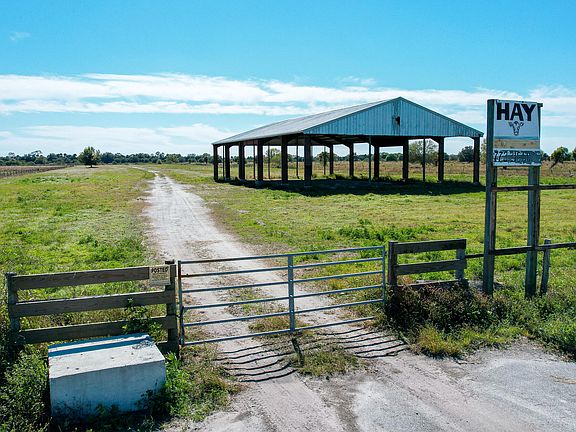 Over 260 road frontage, great for development with so many buyers wanting to live out west of town, or build your dream ranch oasis. Very private with beautiful oaks and palms. Ag tax exemption available. There are 2 flow wells and a 65x115 metal barn on the property. Property currently used for cow hay production. Lets make a deal on this one !All shown land measurements approximate.