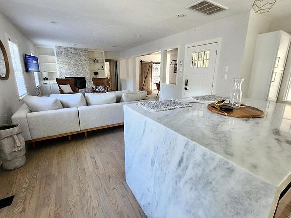 Open floor planFreestanding soaker tubCustom featuresWood floorsBrick floorMarble countersFormal dining