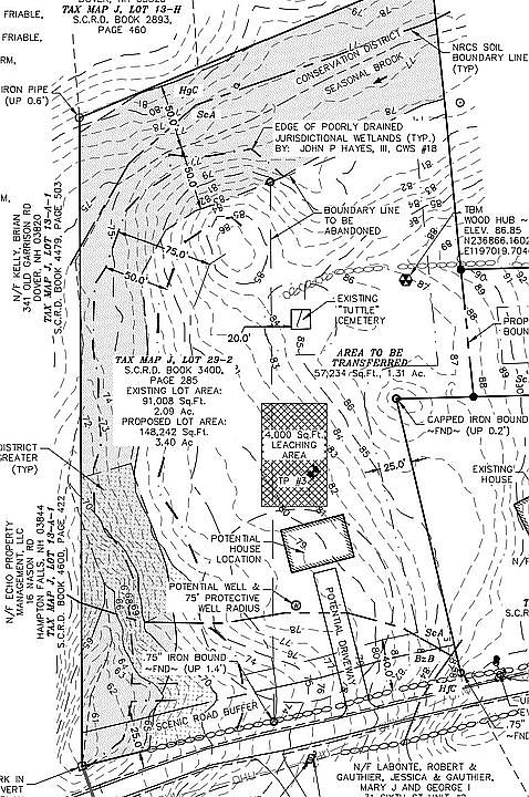 Highly sought after south Dover location. Large 3.39 acre approved building lot. Gently sloped, wooded land with a seasonal stream, across the road from 400 acres of conservation land, on an effectively dead-end Designated Scenic Road, with easy access to highways. The land is in Current Use, so the new owner will need to pay the 10% change of use tax after the sale. Note that the "cemetary" shown on the survey is just a couple crumbling headstones that are difficult to find.