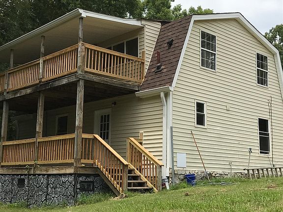Beautiful renovated farmhouse on 7.4 acres. Open pasture or additional building site through woods behind the house. Two story rear deck.