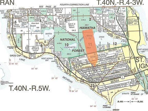 LAND CONTRACT AVAILABLE! as little as $500 down can buy you this nice 6+ acre wooded parcel located just a few miles west of the St.Ignace School system on a year-round paved county road. Parcel is zoned Primary Inland Growth, (10,000 sq. ft. building lots allowed). A road easement was reserved for future development of lots if desired. Seller is licensed broker