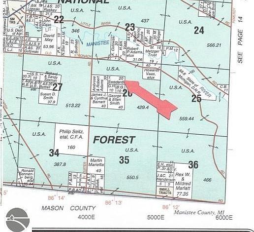 Looking for a great hunting/get-away area that's just minutes from home? This 20-acre parcel is less than 10 miles from downtown Manistee and you'll feel like you're just driven to the U.P. Adjacent to thousands of acres of FEDERAL LAND ON 2 SIDES! AND...you're less than a mile to the LITTLE MANISTEE RIVER! And...you're only one mile to the WEIR. The Little Manistee weir is an egg-take and salmon harvest facility which is operated by the Fisheries Division-Michigan DNR. Steelhead eggs are taken in the spring and Chinook salmon eggs are taken in the fall at the Little Manistee weir. The eggs taken at the weir are sent to State Fish Hatcheries where they are raised and stocked all over Michigan. This is also a great spot to drop into the Little Manistee River for a gentle tube or float to Old Stronach Bridge. The float takes about two hours and is a favorite amongst locals and visitors alike. When the salmon are running you will have them swim right up alongside your boat.