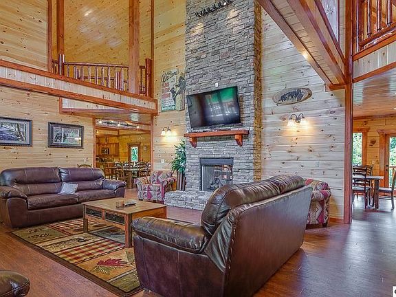 New construction 12 bedroom log cabin, complete with indoor pool and theatre! The perfect investment cabin, will be outfitted beautifully,handsome, dramatic design inspired by the Nottingham Lodge that anchors the Sherwood Forest Resort. (Photos are taken from the Nottingham Lodge). Large spacious great room, with soaring tongue and groove ceilings, true log construction, large stone fireplace draws you into this huge over 8000 sq ft cabin. Gleaming wood, walls of glass, Just minutes from downtown Pigeon Forge dining and shopping and shows!It will be a fantastic investment.