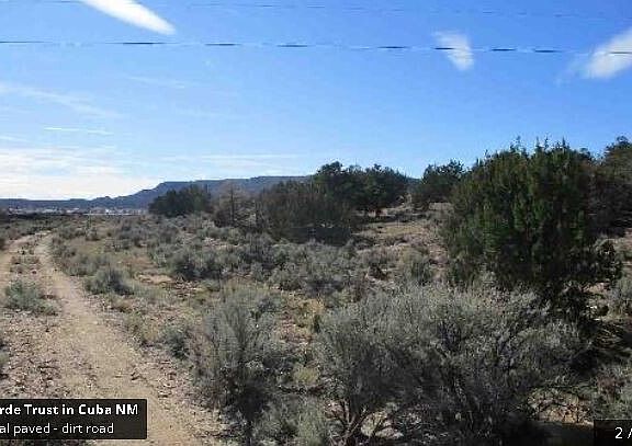 PRICE WENT DOWN!! Beautiful 136-acre parcel just outside of Cuba. Off of pavement. Power pole is in the photo close by. Elk and Deer roam the property's canyon and draws. Views of Cuba below. A seasonal stream weaves its way through the property. Pinon and Junifer trees. Great place for your next home. Bring the toys! This ranch should qualify for an elk tag. Hope to see you soon. Come on out and walk this ranch. You might decide Cuba will be your next home! Listing of NM Real Estate Resources. Listing provided by: NM real estate Resources