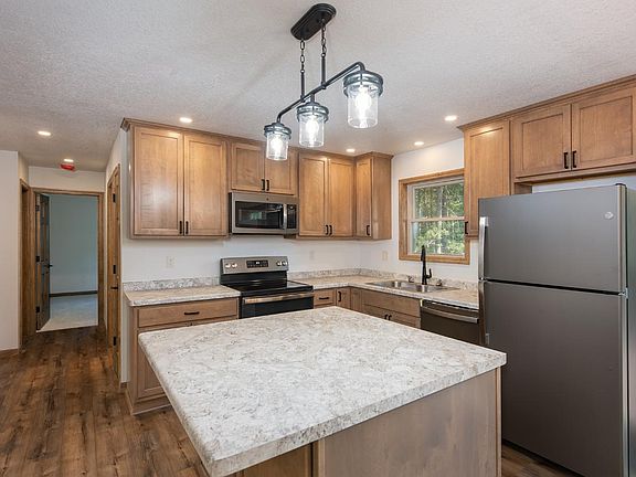 Located on a quiet circle drive between Eagle River & St Germain sits this like new construction home recently placed & rebuilt on this lot off Moonlight Dr. There is a new septic and well as well as all new electric, plumbing, roof, siding, windows and more! The perfect size whether you are gearing up or down at this time of your life. It offers 2 bedrooms & 1 full bath on the main and 1 bedroom & 1 full bath downstairs. It has two separate living spaces (both up & down) and a wonderful open concept kitchen/family room with accent beams that keep it north woodsy yet bright! There is an attached 2 car garage, & you are literally nestled in the trees on this lot. AGAIN, EVERYTHING IS NEW & extremely tastefully done. Try buying the lot and starting from scratch – can’t be done at this price! Close to many boat landings including the Eagle River Chain of Lakes & near trails or all types this could be your perfect permanent address or vacation destination. Call now for a private showing!