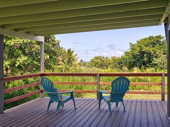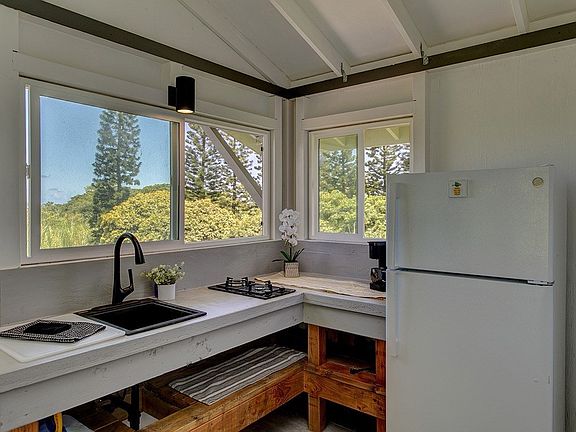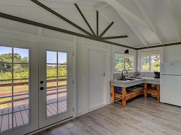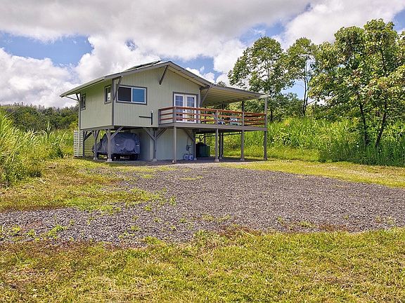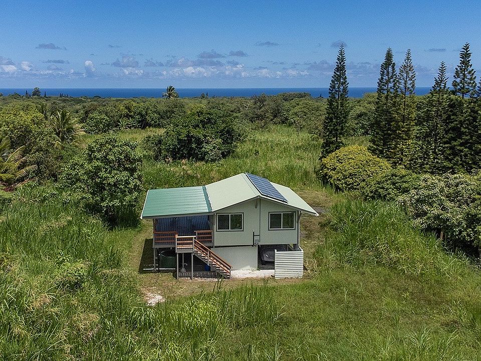 Currently taking back up offers. Enjoy the beauty of Opihikao while living in this tranquil off-grid cabin situated on 1.32 acres off of Kamaili Road. Live simply in this 1 bedroom cabin that has updated plumbing and electrical, vinyl flooring, functional kitchen with concrete counters, open shelving, propane cooktop, and refrigerator. The bedroom has a half bath with an outdoor shower. French doors lead to a 10 x 20 lanai with trex decking and redwood railing, with expansive views of east Hawaii sunrise. A newer solar system, catchment and washer and dryer are included in the sale. The property is partially fenced and gated. This structure is unpermitted, is being sold AS IS and is a cash only sale. No seller financing.