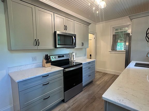 A fully renovated kitchen with stainless steel appliances and plenty of space for cooking and gathering