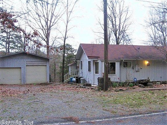 View of Greers Ferry Lake is yours to enjoy! 3 lots -- 2 are Charter Membership lots, and 1 is "Buddy" lot....so dues & fees are nominal!! On septic, so no sewer fee. Main level is 1400+ sq.ft with 3BR, 2Ba, living area(has woodburning stove) & sunroom with views, Dining, kitchen, laundry room. Outside access to 528 sq.ft. shop/storage area. But heated & cooled for other options as hobby room, convert to living space. Big detached garage. ALL SELLING AS IS!!! Make it your own & enjoy the view!