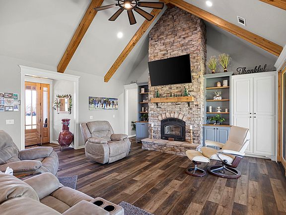Dreaming of space, privacy, and land you can actually enjoy? This custom-built home on 30.83 acres is what you need! With a mix of open pastures and natural areas, there’s plenty of room to spread out, explore, and create the lifestyle you’ve been imagining. Built in 2021, the home thoughtfully blends modern comfort with a connection to the surrounding land. Inside, the 4-bedroom, 2.5-bath split floor plan is designed for both everyday living and entertaining. Soaring ceilings, an open layout, and quality finishes throughout make the space feel bright and welcoming. Outside, the 40x80 shop is perfect for hobbies, business, or equipment storage, and solar panels provide energy efficiency and long-term savings. Properties that combine a newer custom home, usable acreage, and functional infrastructure are hard to find. Located 15 minutes from Ozark and about 40 minutes from Fort Smith, this property offers the freedom of land ownership without giving up convenience - an ideal setting to live, work, and play.