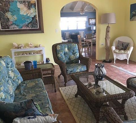 Slow Mocean, Water Island. Crest lot overlooking Crown Bay and cruise ship dock. 2BR/2BA up with 1BR/1BA apartment under. Apartment built in 2017. New kitchen in 2018. Move in condition.