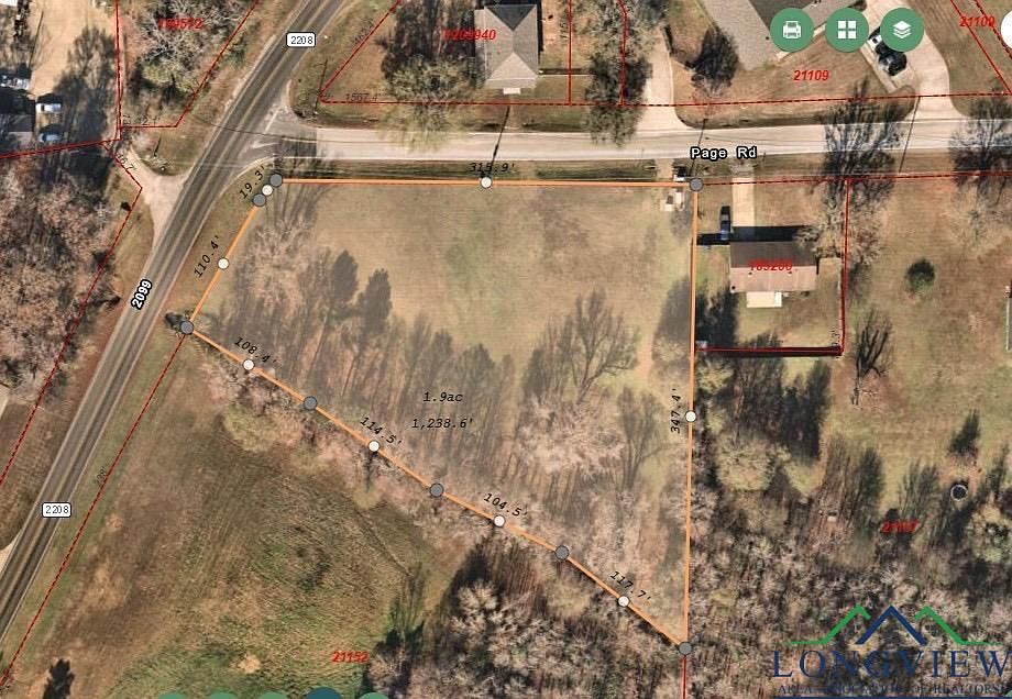 Property to be surveyed by seller. Dimensions are approximate. Somewhere between 1.9 and 2.3 acres to be determined by survey. Creek is rear boundary, Alpine and Page road frontage. Zoned business by City of Longview. Buyer would have to appeal zoning for 1-4 houses or possible townhomes or other use. Great location close to hospitals and shopping.