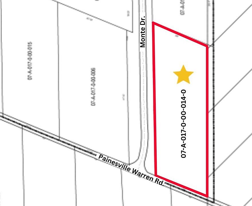 Build your dream home on this beautiful 2 acre wooded lot in Leroy Twp. Located on the Southeast corner of Painesville Warren Rd and Monte Dr. This parcel is exempt from three acre requirement because it was created prior to the lot size increase. It is a legal non-conforming lot. But, the new structure will need to meet the current setbacks of 100 foot front setback, 20 foot rear setback and 20 foot side setback. That is going to leave a building envelope of 80 feet by 352.63 feet.