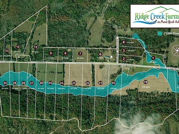 This is your chance for spacious country living with breathtaking ridge views. This beautiful large farm parcel is being offered in 25 smaller tracts to form the community Ridge Creek Farms. The developer's concept plan offers 5-20 acre tracts of fertile farm land consisting of gorgeous home sites, green pastures, babbling creeks and spacious woodlands for hunting in a serene valley. Individual farms will have restrictions and large setbacks for homes to preserve the beauty of the valley. Animals are allowed but limited. These farms are the perfect size and location for families looking to escape the chaos and enjoy the important things in life. *Parcel ID is for the entire 216 acre farm, but listing acres and price reflect the smallest farm being offered within that parcel.