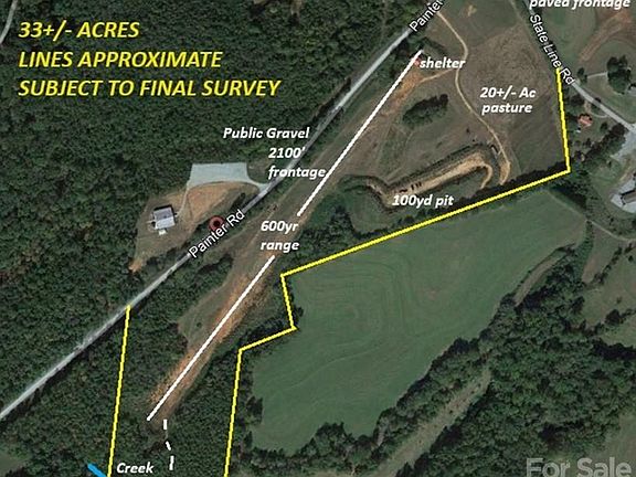 35.3+/- Acres on Stateline and Painter Rd only a short commute to the Tryon Equestrian Center vis US 221. Over 20 acres of open pasture land with established grass ideal for horses. The property is a developers dream with over 2700 feet of public road frontage, good soils and gentle terrain. There is a large picnic shelter with power, and a 40 ft storage container. Formerly known as the Tactical Farm shooting range, the property has a 100 yard shooting pit and a long rifle range. A nice flowing stream cuts across one corner of this farm. An Additional 63 acres wooded land if available across Painter Rd.