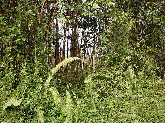 Ohia and fern forested lot on gravel road. Lots open space, not far from the main road.