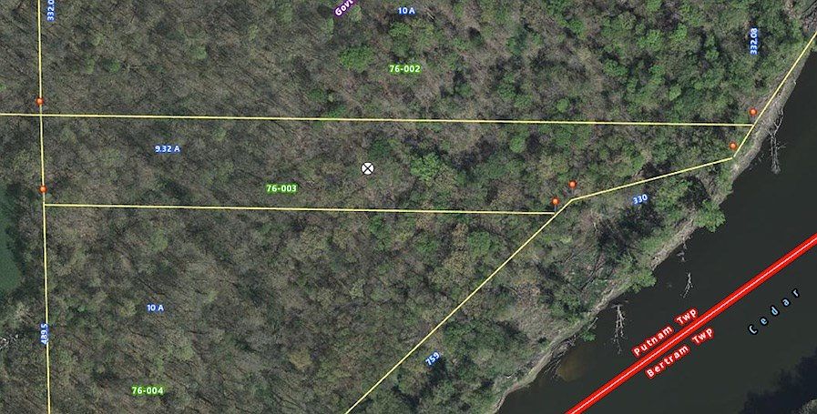 9.32 acres (per Linn Co. Assessors site) of timber just across the Cedar River from Palisades Park. Wildlife as well as a great view of the Cedar River & Palisades Park bluffs. Previously was accessible by foot through neighbor's field. After property was listed, neighbor has decided to no longer allow access. Is accessible by boat from the Cedar River.