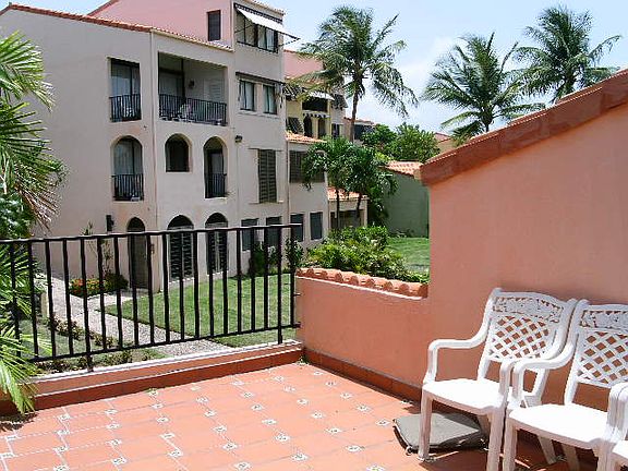 Montesol, Palmas del Mar, spacious split-level, one bedroom apartment with ample terrace 1,193 s/f, cathedral ceiling and bedroom with private balcony. Mediterranean style villas in very secluded and quiet surroundings. At walking distance to the Tennis Center and Restaurant. Espacioso apartamento de un habitacion en niveles. Amplia terraza, techos altos, 1,193 p.c. Area con control de acceso, piscina y bellos alrededores y area bien privada y tranquila. Puede caminar al Tennis y Restaurante.