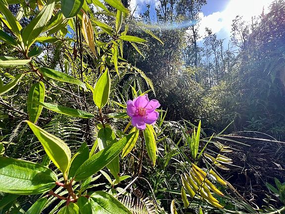 Full of Ohias, ferns, orchids, Red & Green Ti plants and Money tree!