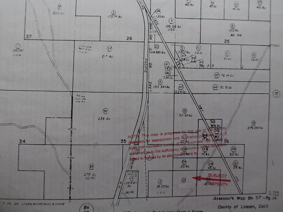 40 acres of beautiful view land, with dirt road going to the property, about 100 yards off Hwy 395 - about 40 miles North of Susanville, 4 miles south of Ravendale, CA. See google maps for view. Picture is a look a like. It is at almost 7000 feet, so cool in the summer, not many trees, but great views, no restrictions for art projects/storage, etc.