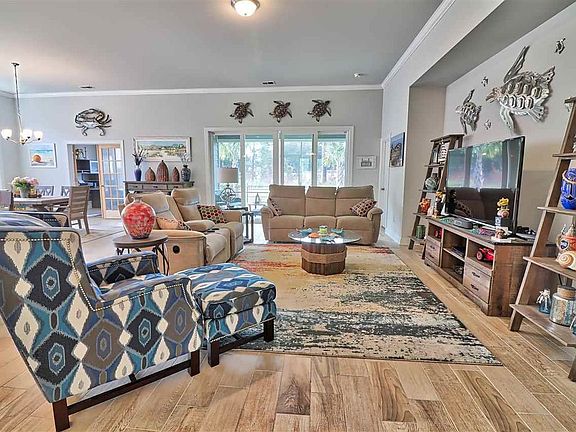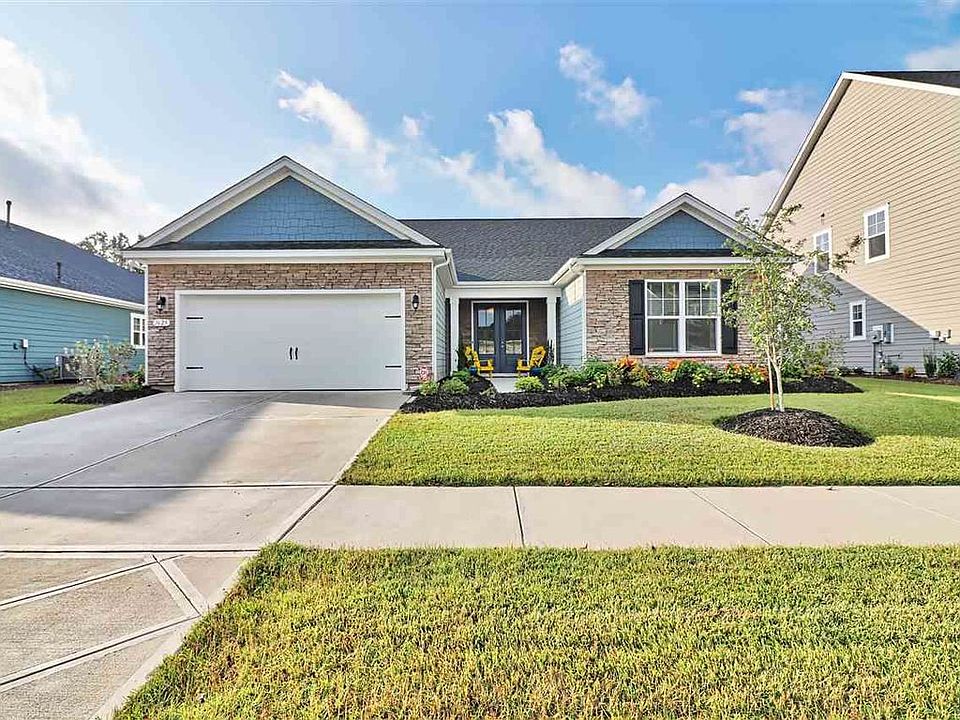 Welcome home !! This is fabulous 3bedroom, 2.5 bath with dedicated office space purchased new in March 2018. This property is located in the prestigious West Lake at Montrose in Market Commons and shows like a model home. Outside of the house is brick and hardie plank. From the moment you enter this grand home, you will be greeted with spacious open floor plan which flows into living room and kitchen. Living room area has 11 ft. high ceilings and porcelain tile with half bath room. Kitchen boasts large beautiful granite island, stainless steel appliances, with a natural gas cooktop, and 36" staggered cabinets. There is a breakfast area next to the kitchen. Across the kitchen is a very spacious dining room and dedicated office area. Large master bedroom with tray ceiling and crown molding and carpet. Master bath features double sinks, large oversized walk in closet and walk in shower. Other 2 bedrooms located across the living room are very spacious and share a full bath. Living room leads to screened in porch area and fenced backyard backing up to a wooded setting and path access. Kitchen area leads to 2 car garage. Approximately, 1.5 mile to The Market Commons town center and 3 miles to the Atlantic Ocean. Just a golf cart ride away from everything you need.