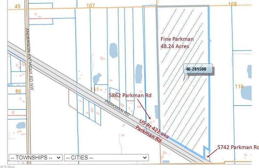 48 Acres Wooded Ground on US 422 West of Warren, Rt. 5 Bypass. Land on North Side of Road between 5862 and 5742 Parkman Rd.