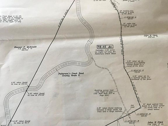 MOTIVATED SELLERS. BUILD CABIN/S, ELECTRIC NEARBY. UNRESTRICTED 78.45 ACRES FRONTS PATTERSON'S CREEK RD./ RT. 11. CAN BE SUBDIVIDED INTO 2-3 TRACTS. GREAT ACCESS TO SEVERAL BUILDING SITES. GREAT HUNTING, DEER, TURKEY, ETC.! MOSTLY WOODED W/ SOME OPEN. PROPERTY ON BOTH SIDES OF RT. 11. LEVEL TO ROLLING W/ SOME SLOPED AREAS. COMMERCIAL OPTION. GATE AT ENTRANCE TO PROPERTY. NEW SURVEY IN 2016.