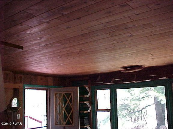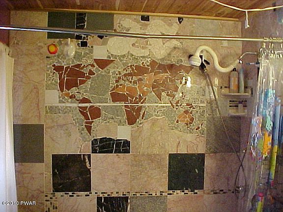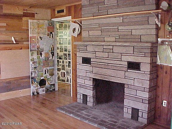 Famous artist created this all year round log home. A one of a kind featuring an assortment of woods, tile, mosaics and glass. Living room w/FP, 3 bedrooms, bath, sun room, kitchen and garage. Extensive gardens on 2+ acres on a private cul-de-sac. Sq. ft. is approx.