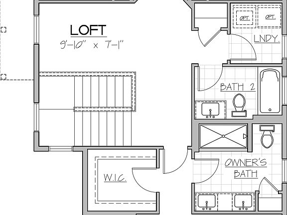 Two-story with 3 bedrooms, 2.5 baths, great room, kitchen with island, upstairs laundry, loft.