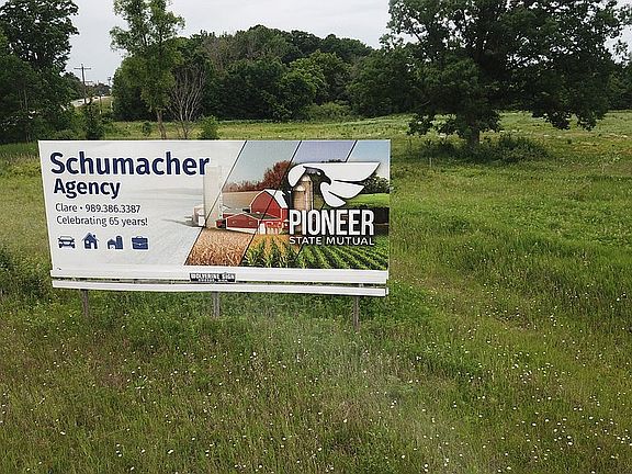 3.8 acres 1 mile east of Clare on Pere Marquette.(Saginaw Rd) Across from Zemko Auto. Great location for anything. Has an income producing billboard on it. Huge traffic count on business US 10.