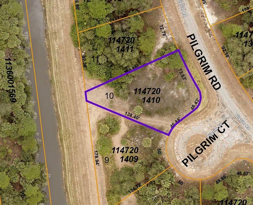 .31 of an acre this pie shaped lot has a view of the canal and is on a small cul de sac of only 3 lots. The lot has been partially cleared at some point. No known scrub jay but buyer should do diligence. Lot is on right as you turn into pilgrim court