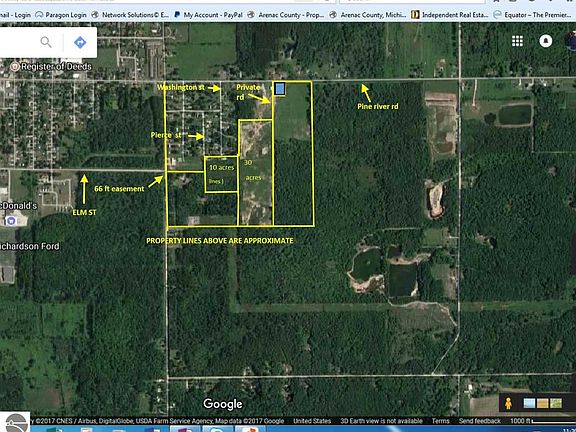 30 acres of land in the City of Standish. Easement for land access of E. City Limits Rd.