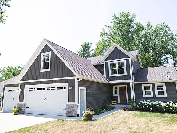 This beautiful home is on a quiet drive in Lake Odessa with access to all-sport Jordan Lake! It features a spacious open floor plan, boasting a large kitchen with granite countertops, stainless steel appliances, large island, food pantry, and open to living room. Great for entertainment! It has a main floor master suite featuring a large walk in tiled shower & custom built walk in closet. It has a mudroom with custom built locker area and laundry/office area. The 2nd floor consists of 3 nice bedrooms, large bathroom, and a bonus room above the garage. Relax on a maintenance free deck overlooking a small creek and pond. .73 acre lot north of home up for purchase if more room is desired. It's close to schools, park, beach, and town. It's centrally located between Grand Rapids and Lansing.
