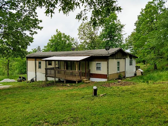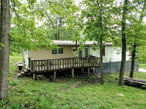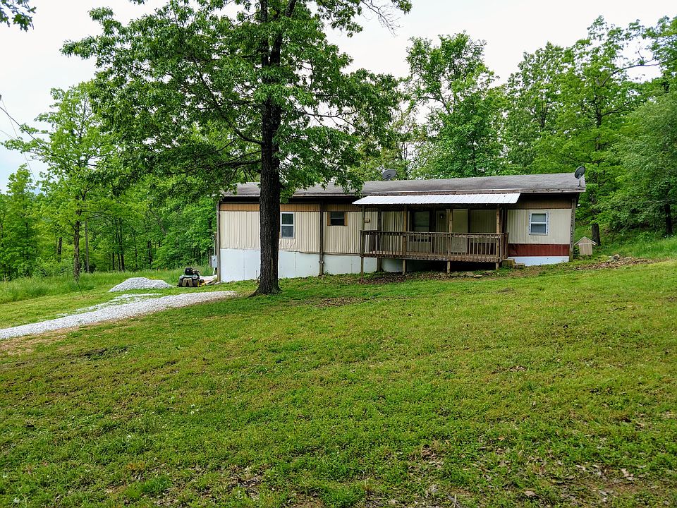 This is a beautiful piece of Ozark property. 19.33 acres facing Boat Mountain. The residence, is a mobile home with additional add-on living space totaling 1800 square feet. This includes living room with French doors to back deck, dining room/kitchen, 2 bed/1 bath with bonus room for music room or office and a large utility/ storage room. This property has well and city water. Plenty of wooded area for privacy and hunting. ADDED BONUS of cleared, level building site for future new home construction. This site offers priceless view and newly built, extremely secure safe/storm shelter. Seasonal creek run through property.Disclosure*Property currently will need a new septic system installed.