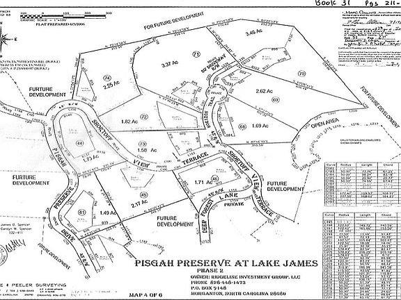 Vacant lot #44 is an easily accessible wooded lot with a level building site and beautiful views of the Shortoff Mountain range located directly across from community reading cabin. Pisgah Preserve is a 460 acre gated community designed with preservation in mind with over 120 acres dedicated to open space, community reading cabin, picnic shelter, fire pit, horseshoe pit and miles of walking trails. Underground electric and fiber optic phone lines, roads constructed to NCDOT specs. Well, and septic needed. This subdivision adjoins the Pisgah National Forest. From your property, drive your ATV to the property line of the half million acres of the national forest or enjoy the walking trails in the Pisgah National Forest adjacent to the community. Hunt, hike or just observe the natural scenery of the mountain lifestyle in the beautiful place we call Pisgah Preserve at Lake James. This desirable rustic home community is just minutes to Lake James, public boat ramps, marina and restaurant, the new 3000 acres Paddy's Creek State Park and Blue Ridge Parkway, Fonta Flora Brewery. 30 minutes to downtown Morganton shops and restaurants and 20 minutes from downtown Marion.