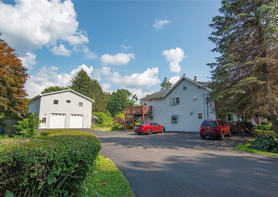 REMARKABLE 3 unit home in Windsor School, renovated in 1990 Newer windows, elec, plumb, siding, patios. Separate electric and gas meters. Blacktop parking-yard for Apt 1&2. Apartment 1-Private entrance from covered porch, 1bd/1.5ba lg kitchen, breakfast bar, garden window, DW, formal dining to the private patio. 1/2 bath off of bdrm. W/D hookup in bath or in full basement w/ ample storage. 200 amp Apartment 2-1bd/1ba w/ jetted tub, separate shower, dual sinks, lg kitchen, breakfast bar, D/W, formal dining, Casa Blanca fans, 2 bay widows, W/D hookups, covered private balcony plus lg private deck to BBQ/dine. Apartment 3-2bd/2ba, formal dining, custom kitchen-storage & counter, custom bksplash, DW, W/D hookup. Upstairs bath-bubble tub w/ heated back rest, Central AC, HW floors, 2 car garage includes a boiler & radiant heated floors, workshop, high ceilings, 200 amp service, electric for welder, full bath in garage! Sunroom, covered patio for hot tub, .5 ac of private landscape.