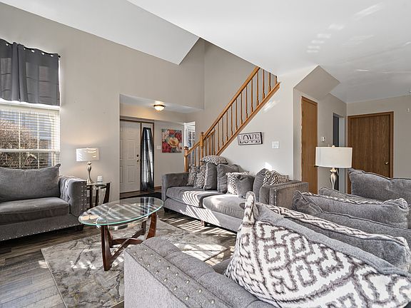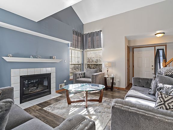 Welcome to this beautifully updated and spacious townhome offering modern elegance and a bright, open-concept floor plan in sought-after Cambridge at the Reserves. Step inside to discover a stunning updated kitchen featuring stylish gray cabinetry, all appliances, and luxury plank flooring that flows seamlessly throughout the main level. The dramatic vaulted living room is bathed in natural light and showcases a cozy gas-start fireplace, creating the perfect ambiance for relaxing or entertaining. A glass door opens to your private patio, ideal for morning coffee or evening gatherings. Upstairs, the impressive vaulted loft overlooks the living room and provides an inviting flex space for a home office, den, or reading nook. The convenient second-level laundry room with utility sink adds everyday ease. The luxurious master suite boasts a large walk-in closet and access to the updated shared bath featuring a raised gray vanity and a soothing soaker tub. The spacious second bedroom includes two closets, one of which is a generous walk-in. Additional highlights include an attached garage and a prime location close to downtown Plainfield, shops, dining, and easy expressway access. This home perfectly blends modern updates, thoughtful design, and a fantastic location-a true gem in Cambridge at the Reserves!
