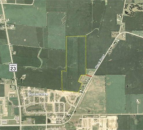Location: The subject farm is located approximately 38 miles west of Chicago O'Hare International Airport and within the city of Sycamore. Nearby towns include: Genoa (4 miles north), Burlington (4 miles east), and DeKalb (5 miles southwest). Frontage: Current access is provided by an easement until such time as Springfield Street is constructed. Major Highways: Illinois Route 23 is 1/2 mile west, Illinois Route 64 is 2 1/2 miles south, Illinois Route 72 is 4 1/2 miles north, and Illinois Route 47 is 10 miles east of the property. Legal Description: A brief legal description indicates The Sycamore North Farm is located in Part of the Southeast Quarter of Section 16 and Part of the Northeast Quarter of Section 21, Township 41 North - Range 5 East (Sycamore Township), DeKalb County, Illinois. Total Acres: There are a total of 114.11 acres, more or less, according to the DeKalb County Assessor's Office. Tillable Acres: There are approximately 114.71 cropland acres according to the DeKalb County FSA. Soil Types: Major soil types found on this farm include Elpaso silty clay loam and Catlin silt loam. Topography: The topography of the subject farm is level to gently rolling.Price and Terms: The asking price is $16,500 per acre. The owners are seeking a cash sale. A 10% earnest money deposit should accompany any offer to purchase. Financing: Mortgage financing is available from several sources. Names and addresses will be provided upon request. Taxes: The 2014 taxes totaled $5,908.98 The tax parcel numbers are #06-16-400-004, #06-16-400-007, #06-16-400-008, #06-16-400-009, #06-21-200-015, and #06-21-200-016. Grain Markets: There are a number of grain markets located within 10 miles of The Sycamore North Farm. Zoning: The Sycamore North Farm is zoned R-1 Residential. Comments: Subject property is located within the city limits of Sycamore and borders North Grove Crossing Subdivision. Zoning is R-1 Residential. Sewer and water to the edge of south property boundary.
