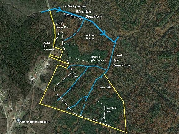 Upland Oaks along the Little Lynches River make this recreational property one of a kind. Big game including wild boar, whitetail deer and small game call this old growth timber their home. The property features a sizable stream that starts in the middle and feeds into the Little Lynches River. Dynamic hills, coves and bottomland allow several persons to hunt without feeling crowded. A nice road goes into the property almost a mile. This road has several culverts and planted food plots. Plus, there are multiple atv/hiking trails to secluded spots. Mature pines and planted pines are ready to thin for cash flow. Large quartz boulders are on the property, and the Haile Gold Mine is operational just to the east of this land.