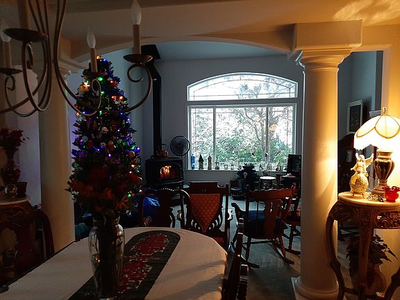 2567 sq ft custom built home on 5.02 acres. This home offers a Master Suite with large bathroom, soaking tub, shower, water closet and walk in closets. The guest bedroom is large and also has a large walk in closet. The 3rd bedroom has wonderful views to the back yard.The Den has french doors that lead to the back patio, it could be a 4th bedroom as it has a closet. Formal living room (16 foot ceiling) and family room, formal dining room with coffered ceiling & pillars, arched passages. Gas fireplace in family room and a wood burning stove in the living room that heats the entire house. Beautiful & durable wide plank laminate flooring. The Kitchen has beautiful cherry stained knotty alder cabinets with egg & dart crown moulding, Granite countertops and a Breakfast nook! Attached 4 car garage plus an 11' x 33' Back Garage/Shop which has an additional 200amp service with a 50amp plug as well as awesome lighting in and out!. This is a must see unique property Beautifully Landscaped balanced with the best of Nature! Trails through-out. Soaring Fir, Cedar and Maple trees! There is also a large Veggie Garden with plants already Growing your food! ** Shown by appointment Only **