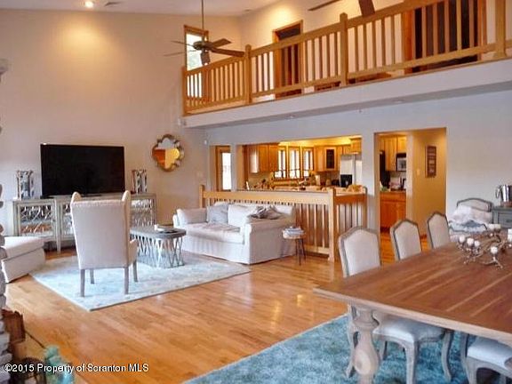 - Description: Stone Fp, Hw, Vlt'd Ceilings; Living/Dining Combo