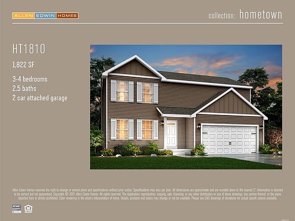 With over 1,800 square feet of living space, this traditional 2 story floorplan is a great option!. The clever footprint is designed to optimize living space without sacrificing storage space. The first floor features an open concept layout with a large great room, dining nook and kitchen with peninsula. The extra counter space is multifunctional, serving as prep space plus a breakfast bar. The powder room is tucked away from the main living space, along with a first floor laundry room. The second floor includes a spacious master bedroom suite with a large walk in closet, 3 additional bedrooms and a full bath.